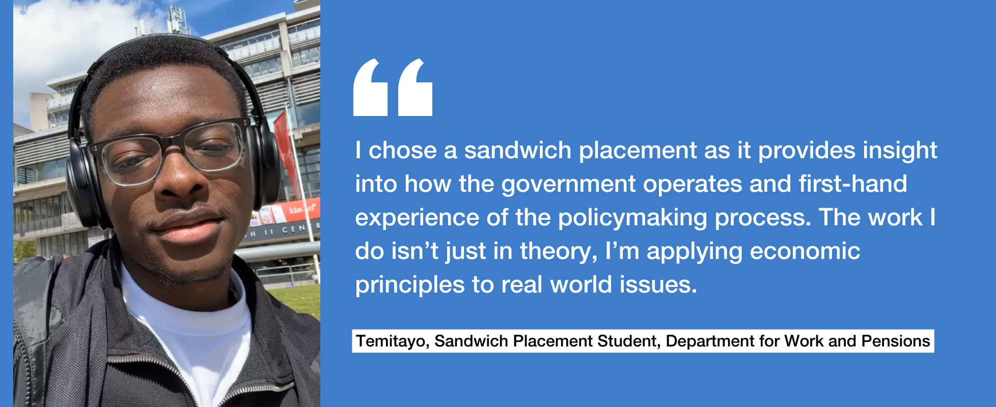 If you successfully complete your sandwich placement, you may also be invited to apply for a permanent role as an Assistant Economist in government. In this case, you will be invited to sit an Economic Assessment Centre (EAC) towards the end of your placement. This invitation is based on your suitability and performance during your placement and your right to work in the UK Civil Service.