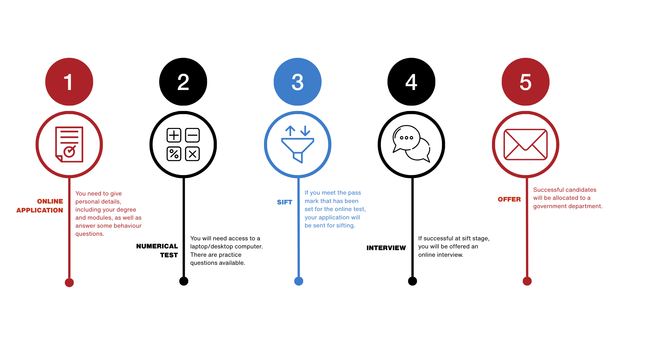 Please note – should you select Foreign & Commonwealth Development Office (FCDO) as one of your preferred departments and be assigned to them, you will be invited by FCDO to attend an additional interview. Should you not pass this interview, you may be assigned to another department.